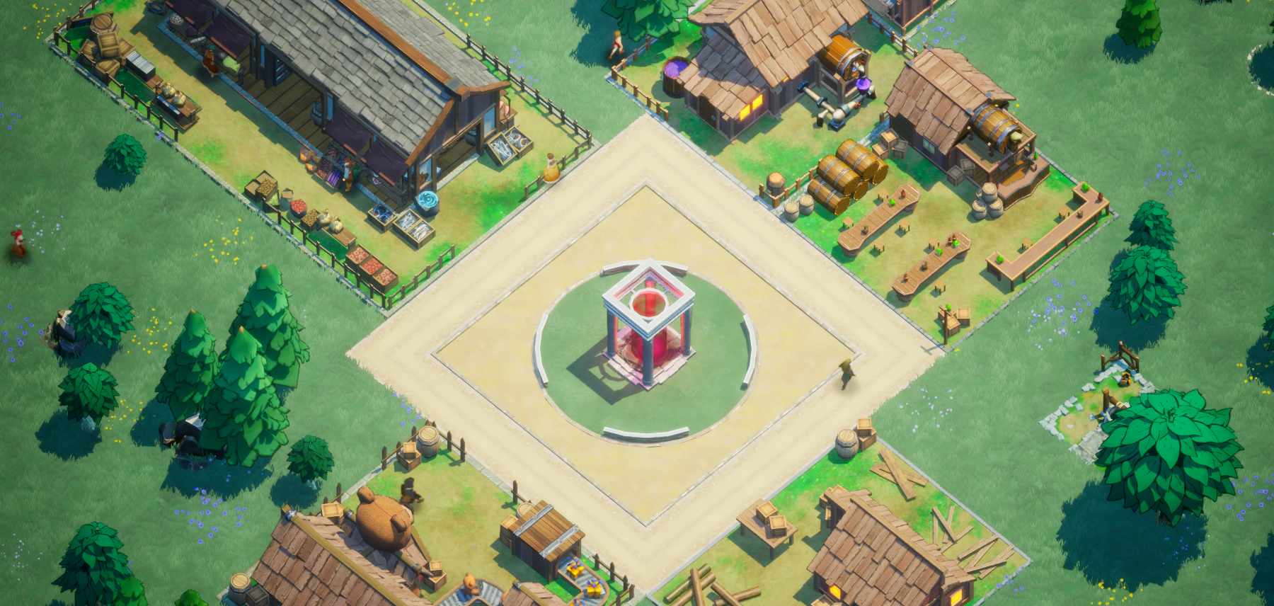 玩家需要通过城市里的建筑,布局生产链,来产出金币,经验值,或者其他材料,来培养冒险者。