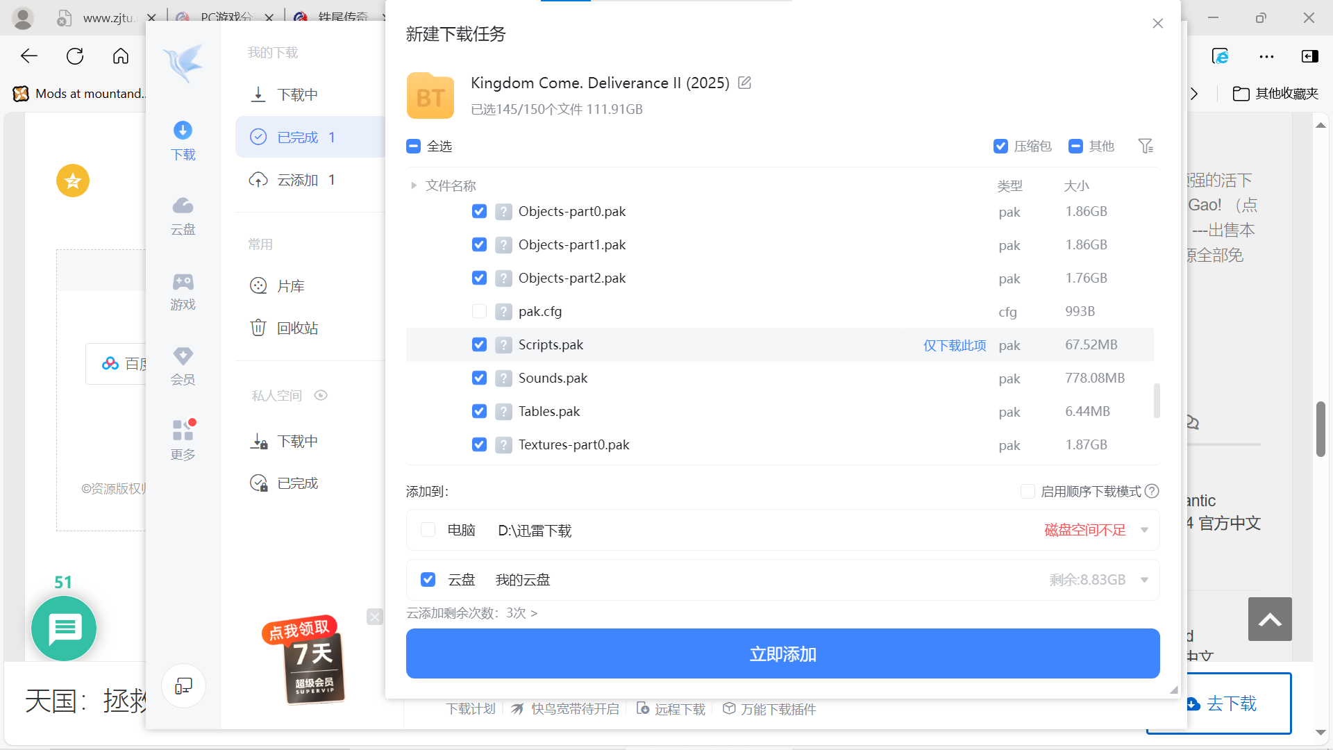 磁力链接1用迅雷打开后 自动勾选的文件中没有勾选Data文件夹中的pak.cfg(如图)只要再单独下载下来放在游戏根目录中的Data文件夹里就可以解决报错问题