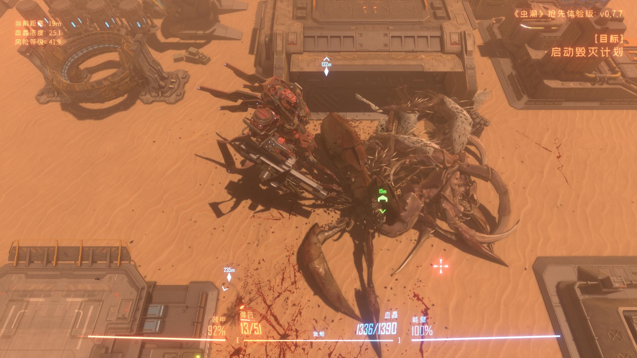 这颗星球只剩下你一个人了,还有不计其数的虫子。就在几年前,探测器在浩瀚的宇宙中发现了这颗星球,虽然是颗荒芜的沙漠星球,但在星球表面却有很多貌似不应属于这里的稀有矿物,这种矿物蕴含极高的能量,人们开始在这颗星球建造开采基地来开采这价值不菲的矿物,直到有一天.... 地底传出渗人的咆哮声,随即爬出数量惊人的外星生物,称之为“血虫”,随后发现这种矿物实际上是血虫的高浓度血液凝结而成的血晶!我们的大型矿车貌似打搅了这些沉睡在地下的生物,并向我们展开猛烈报复,几乎所有开采基地和设备都遭到了摧毁。而你身为一个没有来得及撤离的倒霉蛋,要自己想办法在这地狱中生存下去并撤离,如果可以的话.... 毁灭这里,以绝后患!祝你好运!
