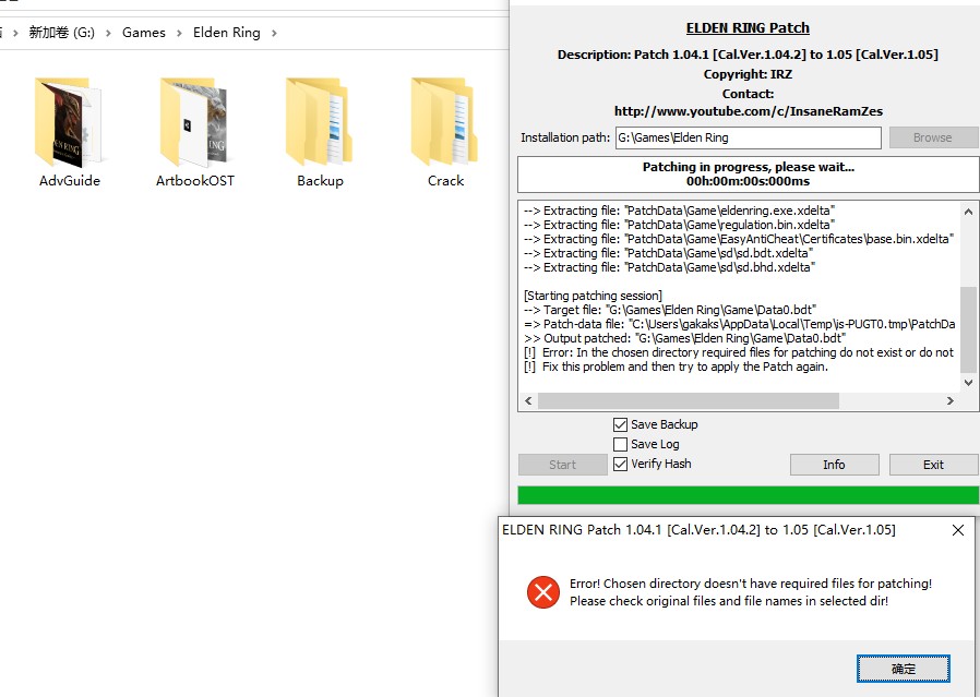 这个错误是安装补丁时候出错的,还是1.05补丁装好了打开游戏出错的?