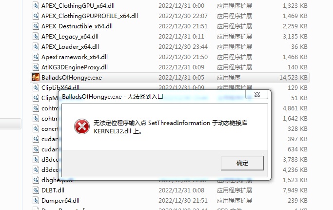 使用WIN7系统。按要求把存放路径弄的英文,但是进入“bin64”文件夹启动游戏后仍然报错,请见截图,求指导:
