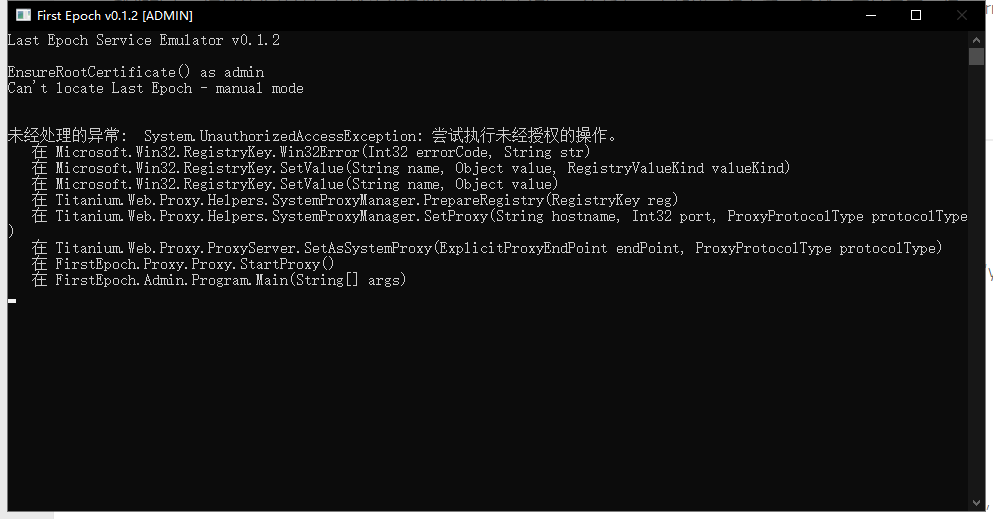 2.运行FirstEpoch.exe,启动好后最小化,不要关闭。(最好以管理员身份运行),在每个关于证书的对话框上单击“yes”,这是HTTPS代理正常工作所必需的