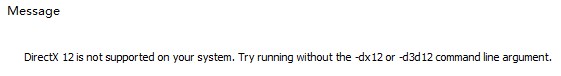 打不开 DirectX 12 is not supported on your system. Try running without the -dx12 or -d3d12 command line argument. 提示这个
