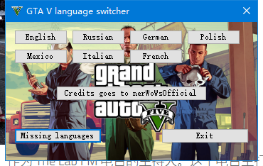 亲测language changer 用不了也用不着。替换crack之后点gtav直接开玩,默认就是中文。