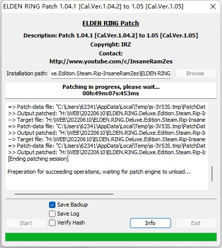 PS:安装此补丁时,可将 Save Backup 和 Verify Hash 这两项取消勾选,费空间还费时间。